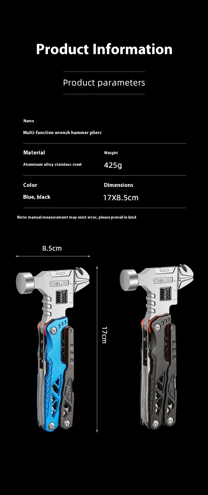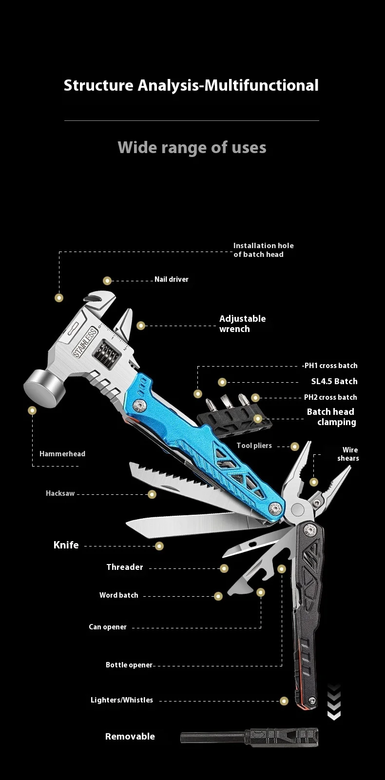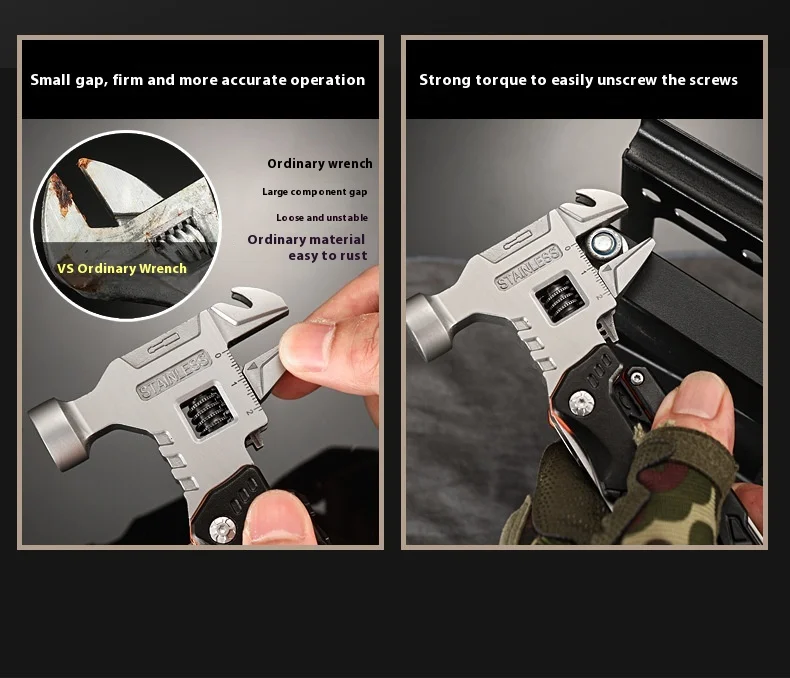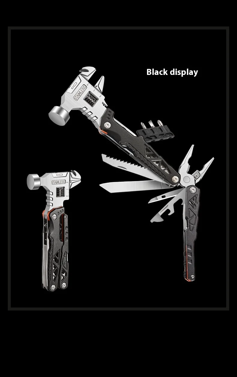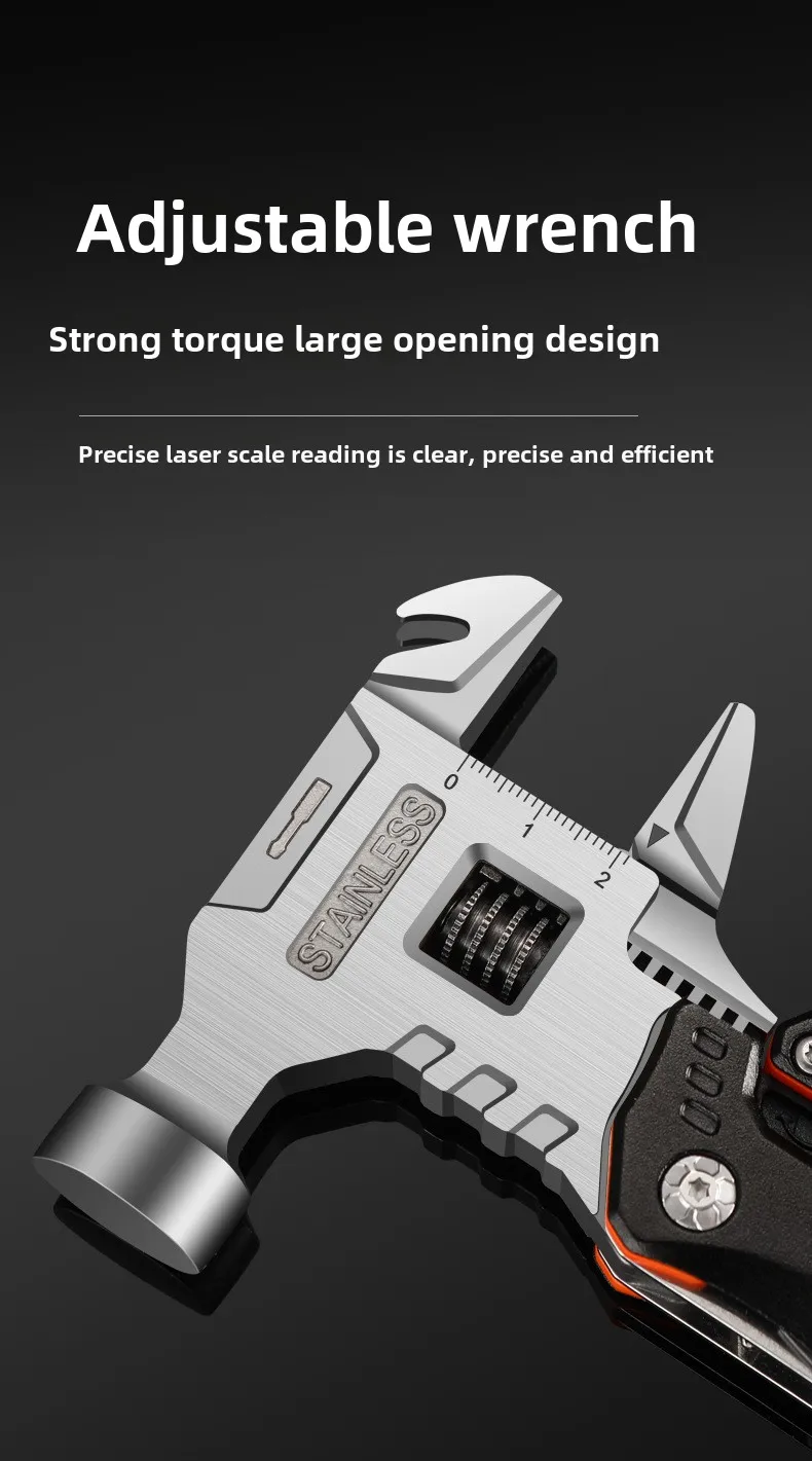 18-in-1 Stainless Steel Powerful Multi-Functional Camping Gear Outdoor Folding Safety Hammer for DIY OEM Customizable